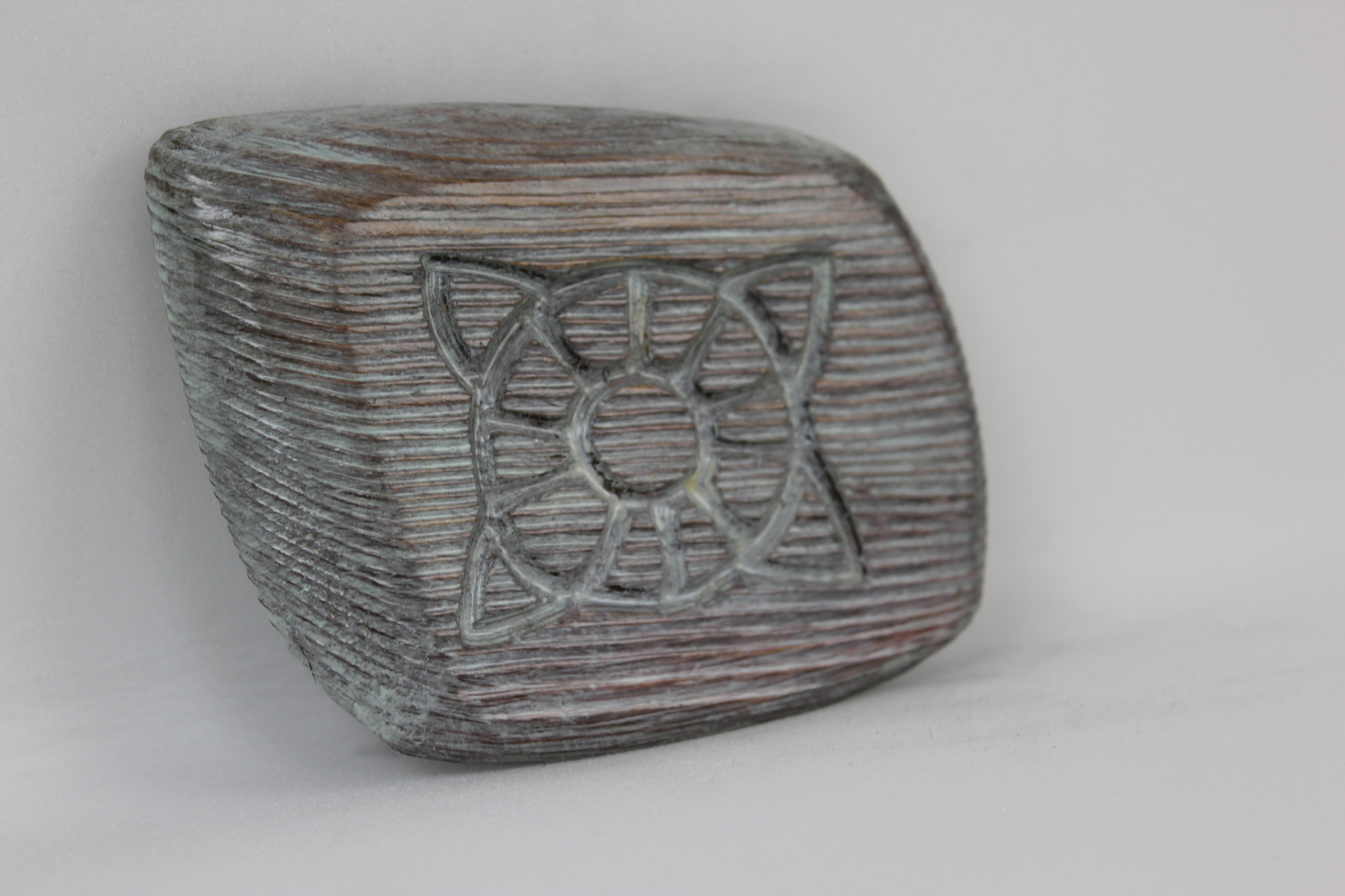 Для достижения качественной поверхности древесина брашируется и проходит этапы шлифовки и полировки. Это ручная работа, как и покраска. Для получения максимального эффекта камня используется минимум пять цветов. Патинирование создает эффект старины или вековой плесени. Контур обрезается также вручную. Все это значит, что каждый сувенир уникален. Двух одинаковых не будет никогда.