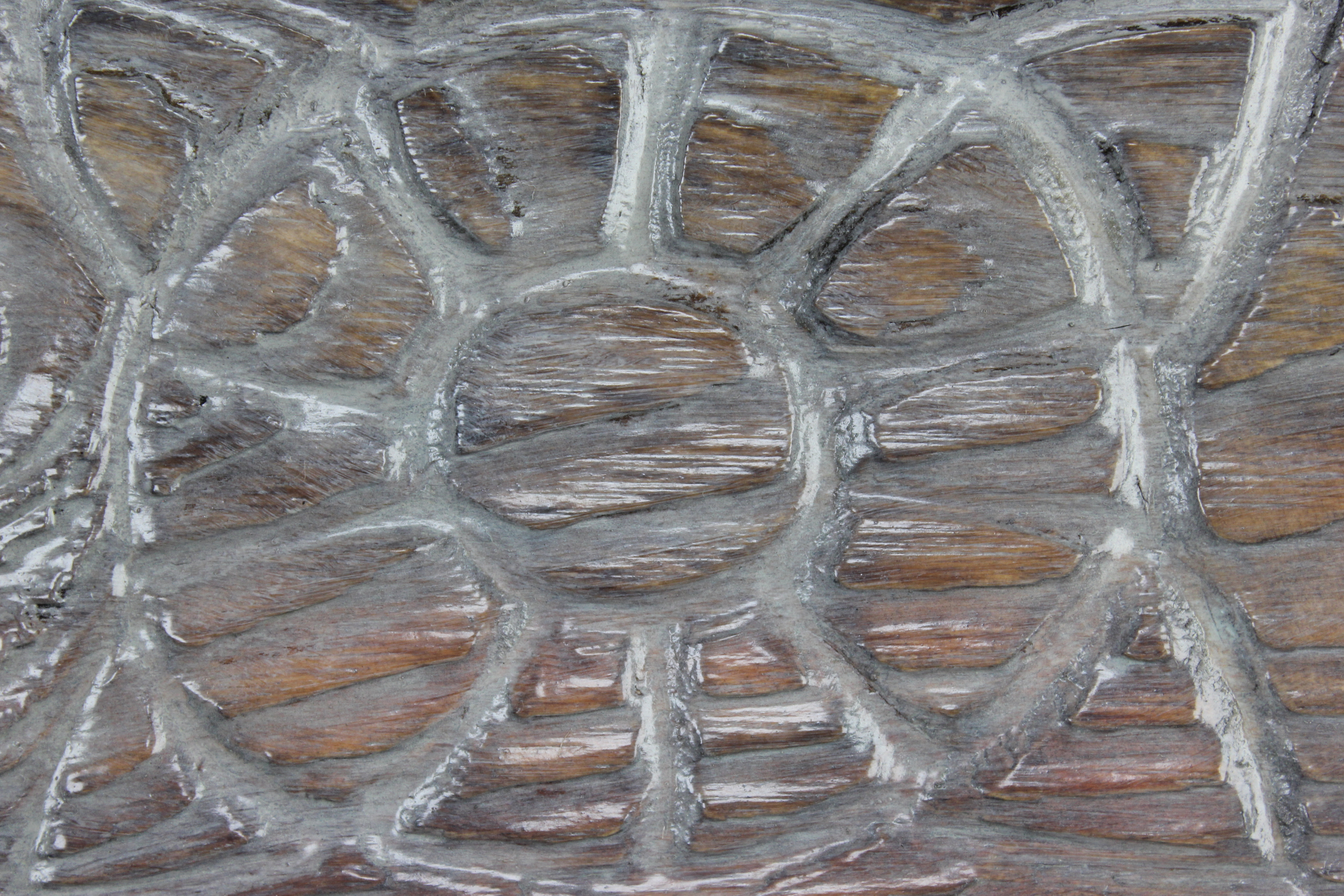 Для достижения качественной поверхности древесина брашируется и проходит этапы шлифовки и полировки. Это ручная работа, как и покраска. Для получения максимального эффекта камня используется минимум пять цветов. Патинирование создает эффект старины или вековой плесени. Контур обрезается также вручную. Все это значит, что каждый сувенир уникален. Двух одинаковых не будет никогда.