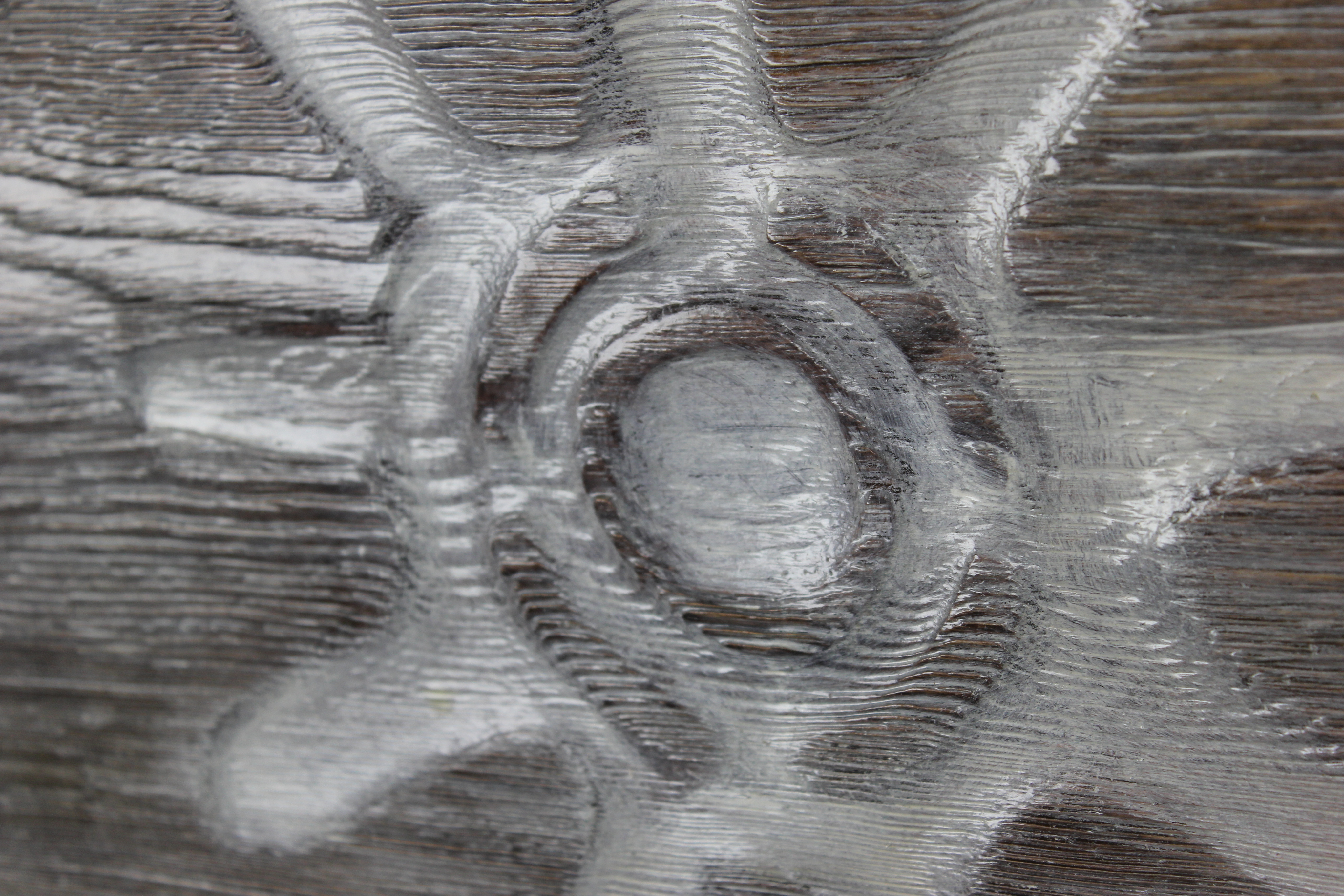 Панно изготовлено из массива дерева. Габаритные размеры: длина 55 см, ширина 37 см, толщина 2 см. Размеры изображения 30 см х 30 см.