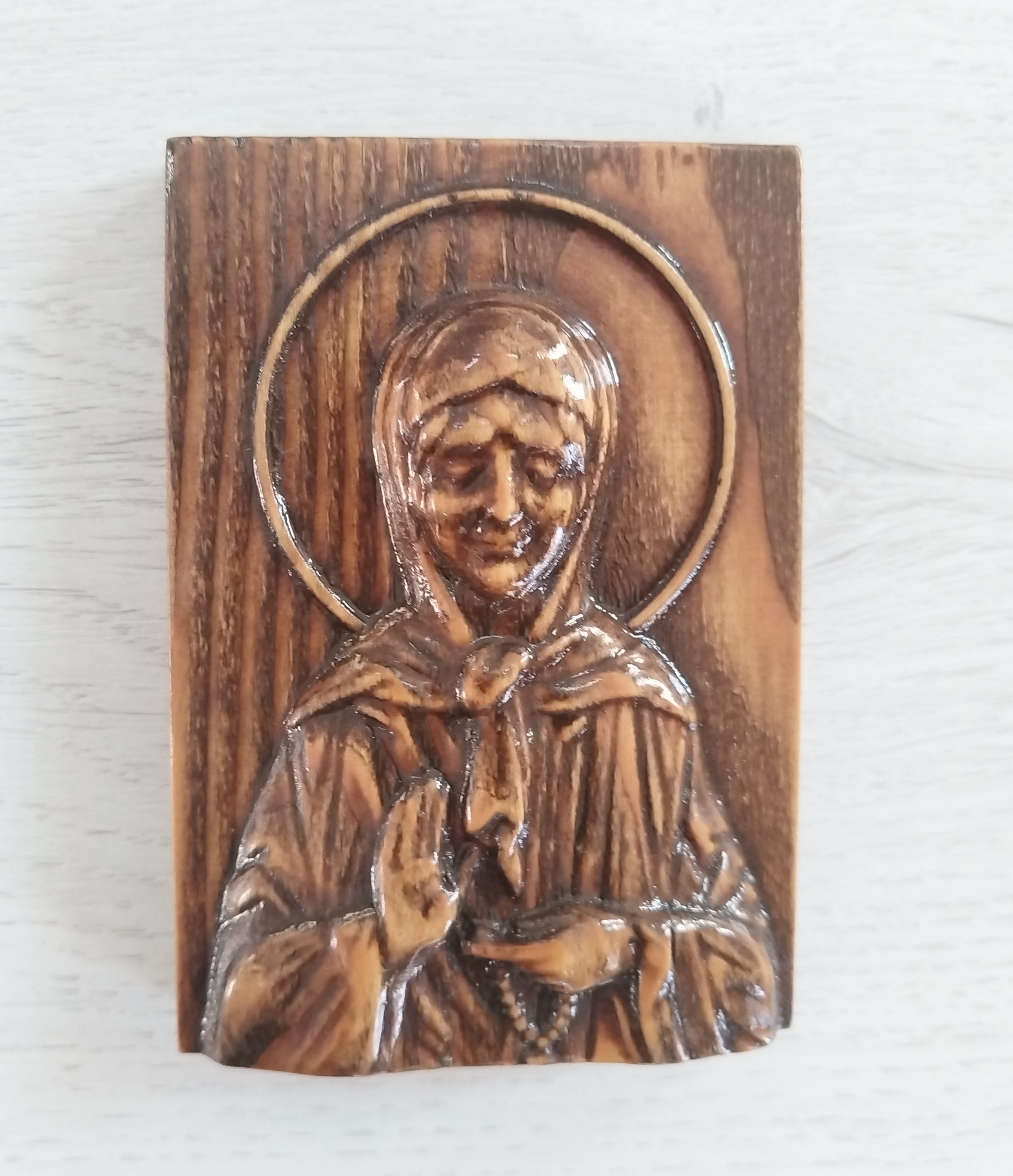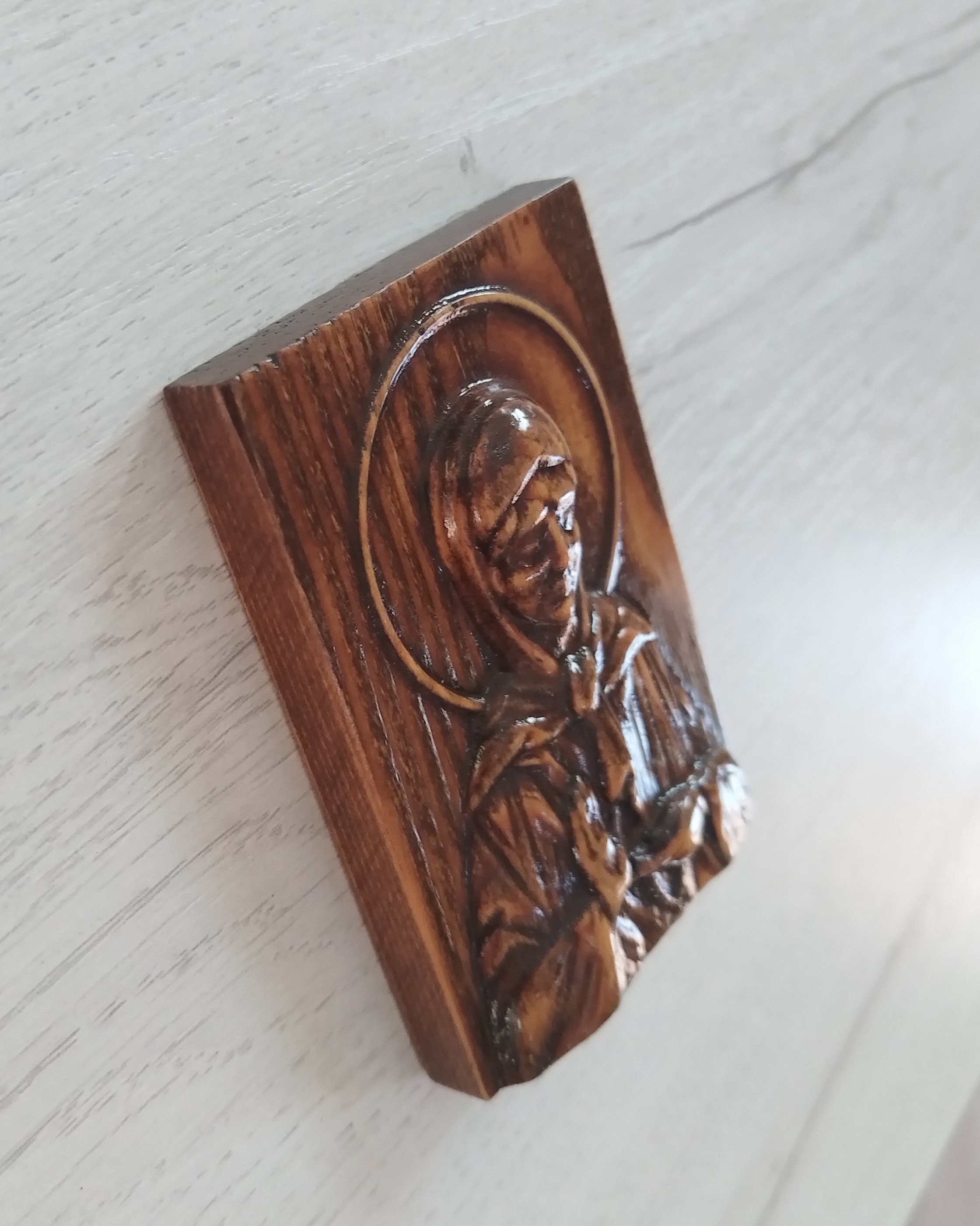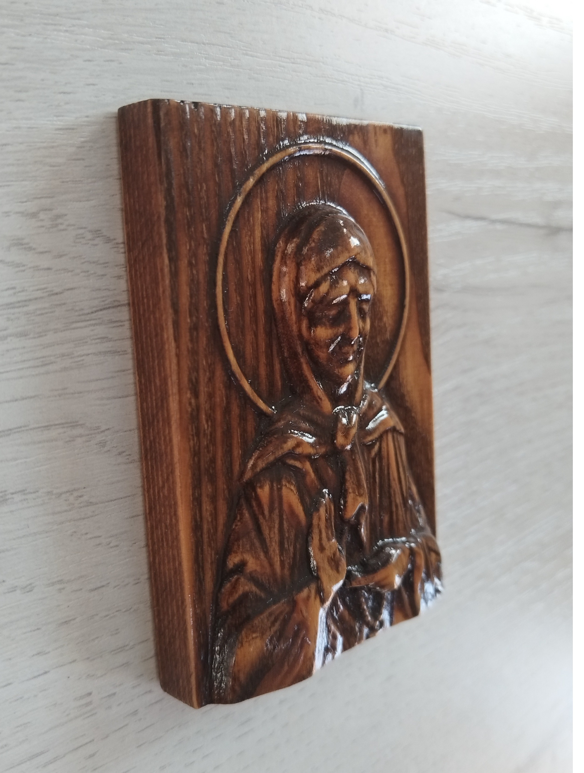 Икона из массива лиственницы сибирской. Ручная работа. Размеры: высота 85 мм, ширина 65 мм, толщина общая 15 мм. Икона освящена.
