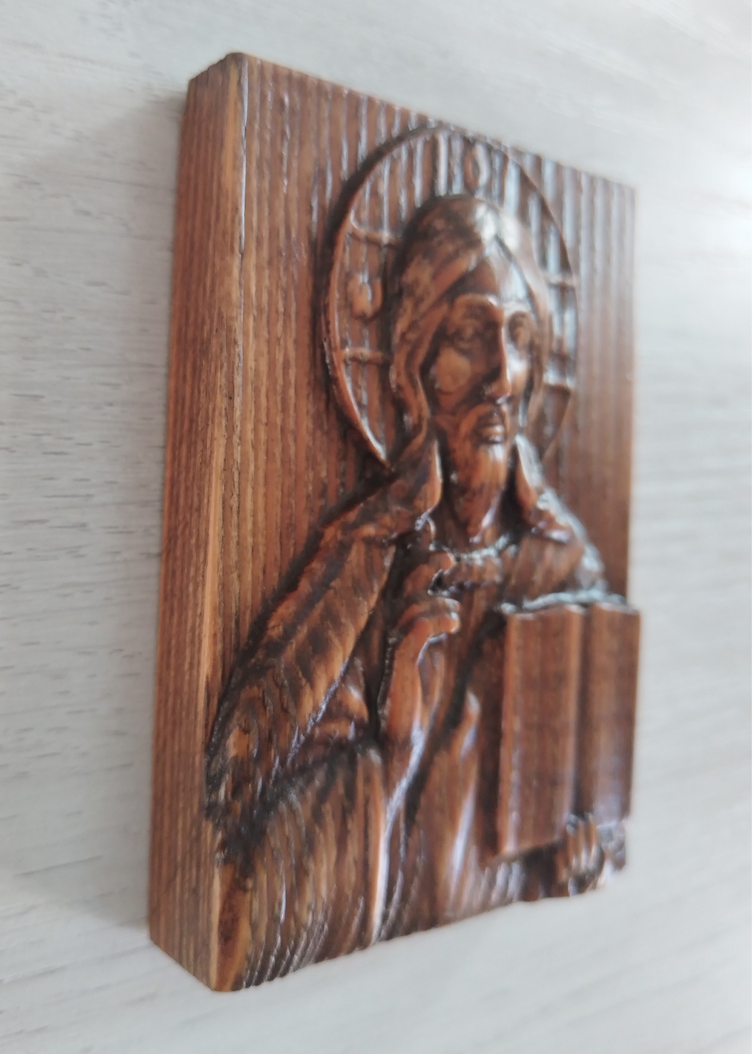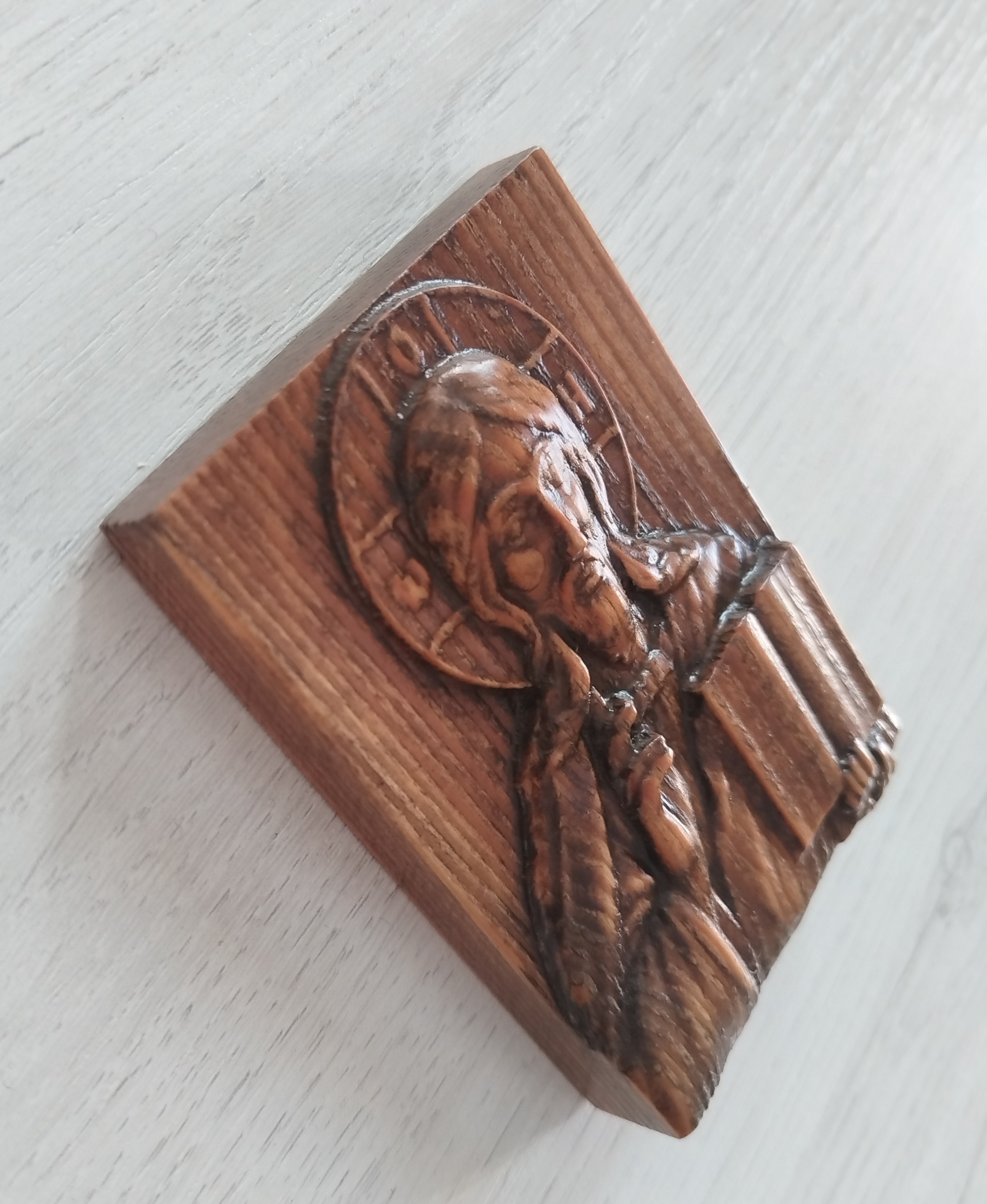 Икона из массива сибирской лиственницы. Ручная работа. Размеры: высота 85 мм, ширина 65 мм, толщина 15 мм.
