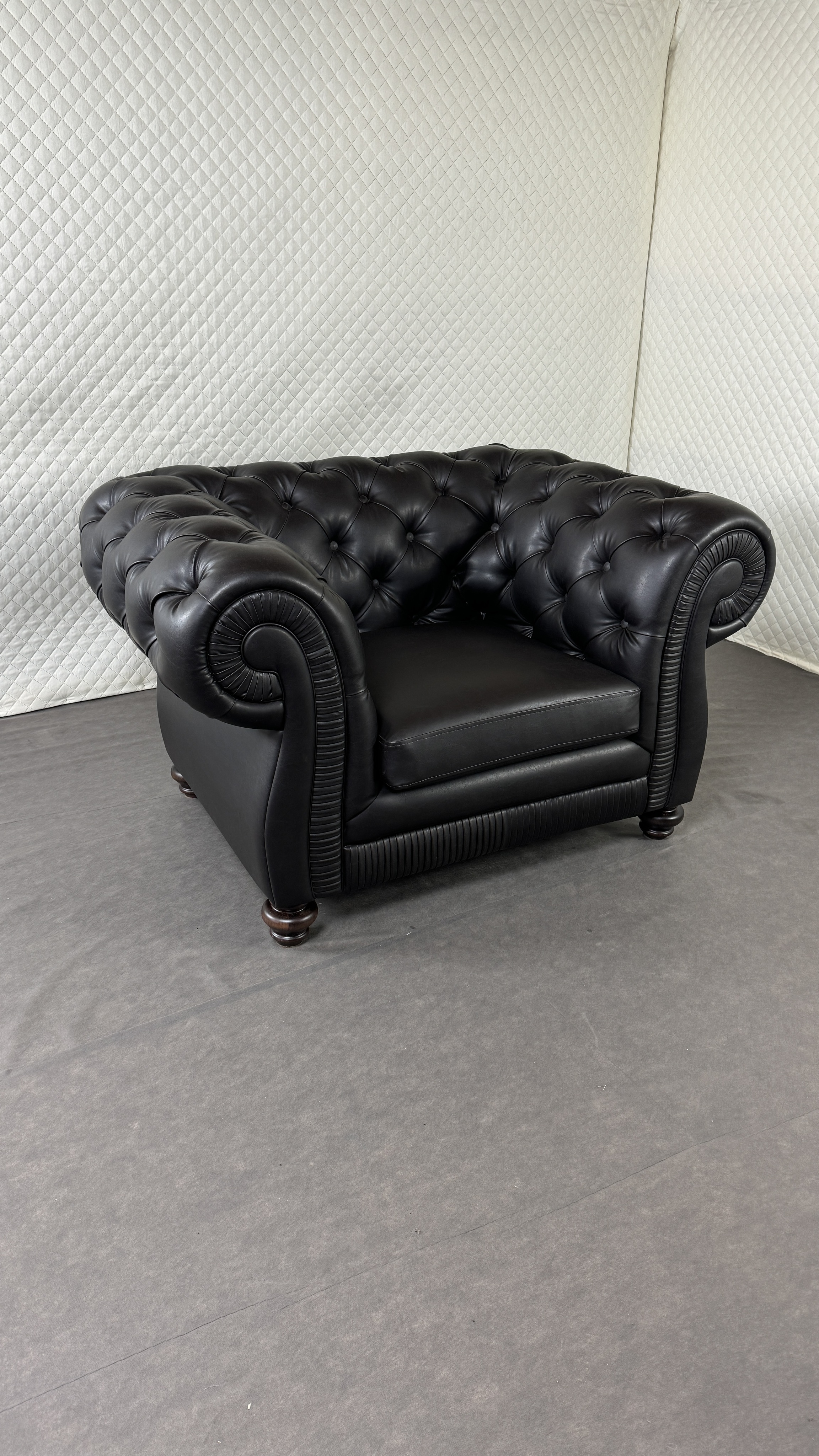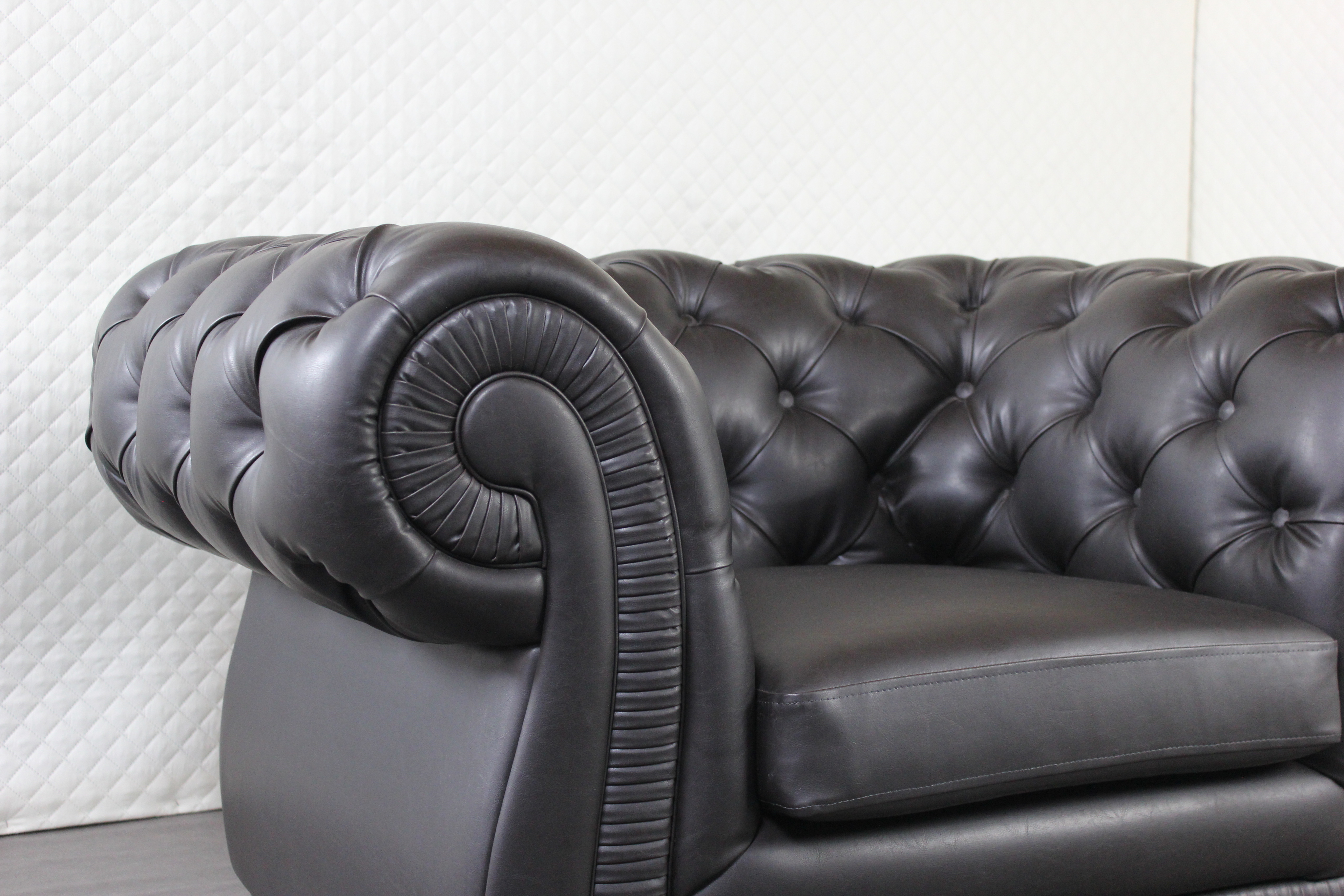 - Спинка украшена ромбовидной каретной стяжкой.