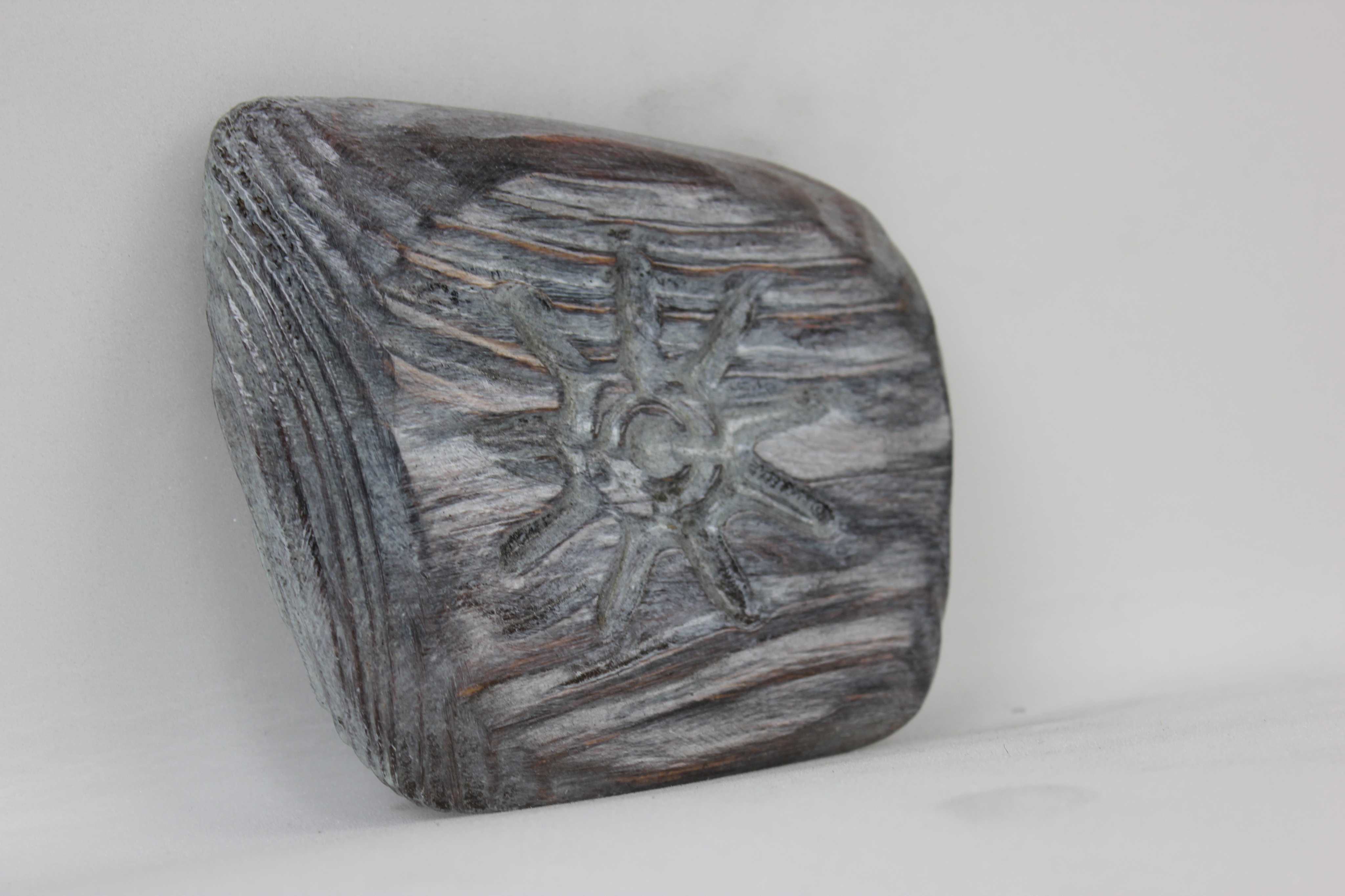 Для достижения качественной поверхности древесина брашируется и проходит этапы шлифовки и полировки. Это ручная работа, как и покраска. Для получения максимального эффекта камня используется минимум пять цветов. Патинирование создает эффект старины или вековой плесени. Контур обрезается также вручную. Все это значит, что каждый сувенир уникален. Двух одинаковых не будет никогда.
