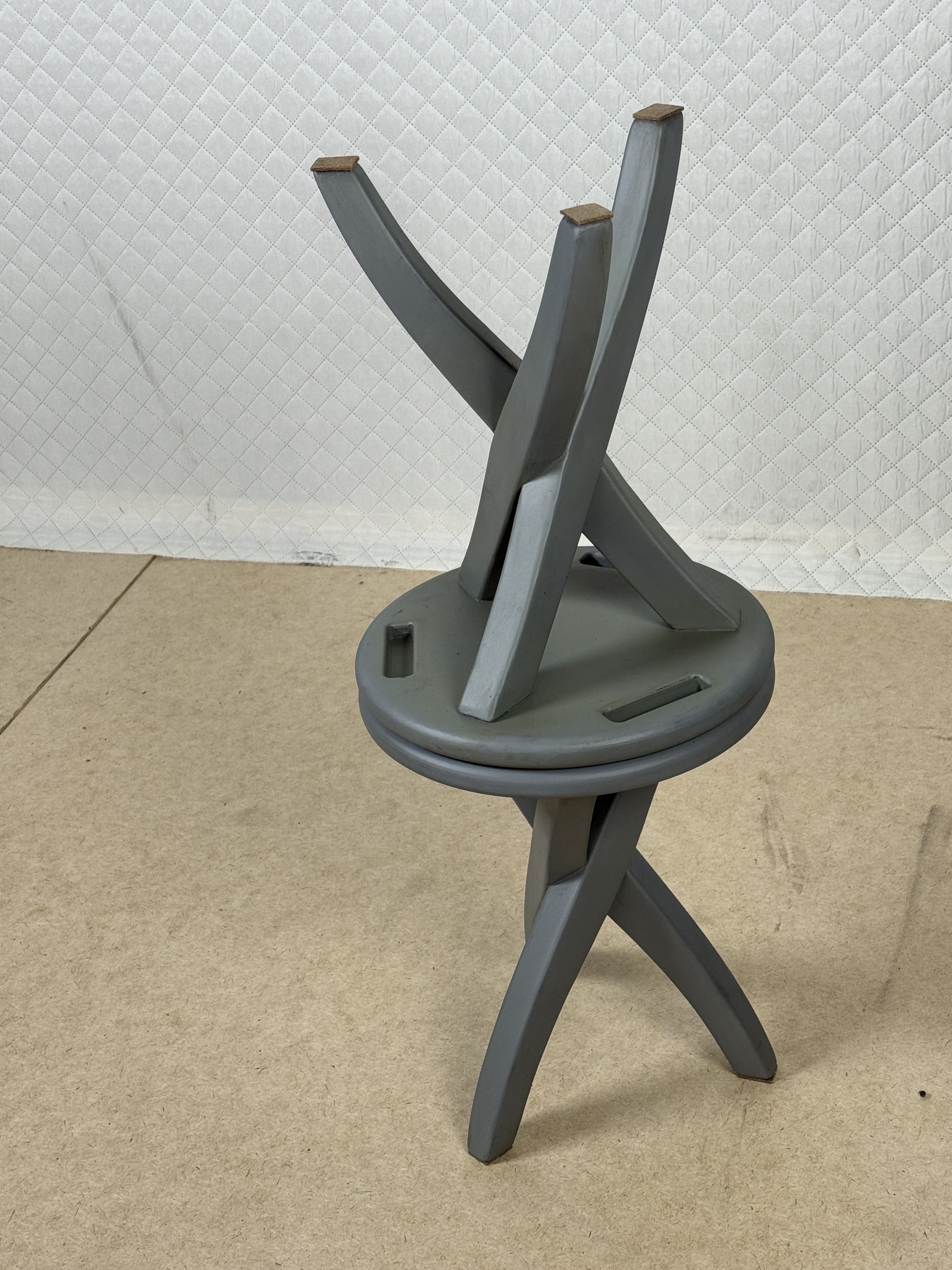 Хотя, кажется, что табурет стоит лишь на трех точках опоры, конструкция удивительно стабильна и надежна. Геометрия позволяет равномерно распределить нагрузку и минимизировать риск опрокидывания.